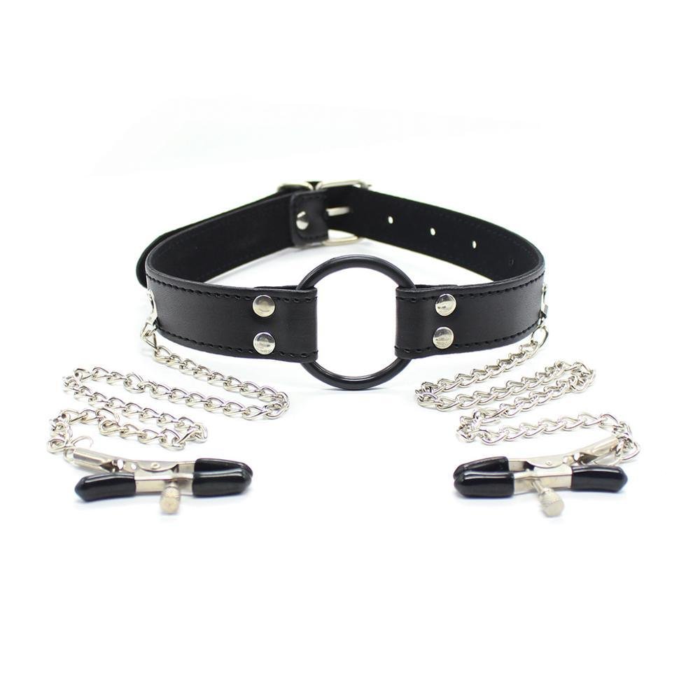 Faux Leather Choker Collar With Nipple Breast Clamp Clip Chain Couple SM Sex Toys For Woman Sex Tools For Couples Adult Games